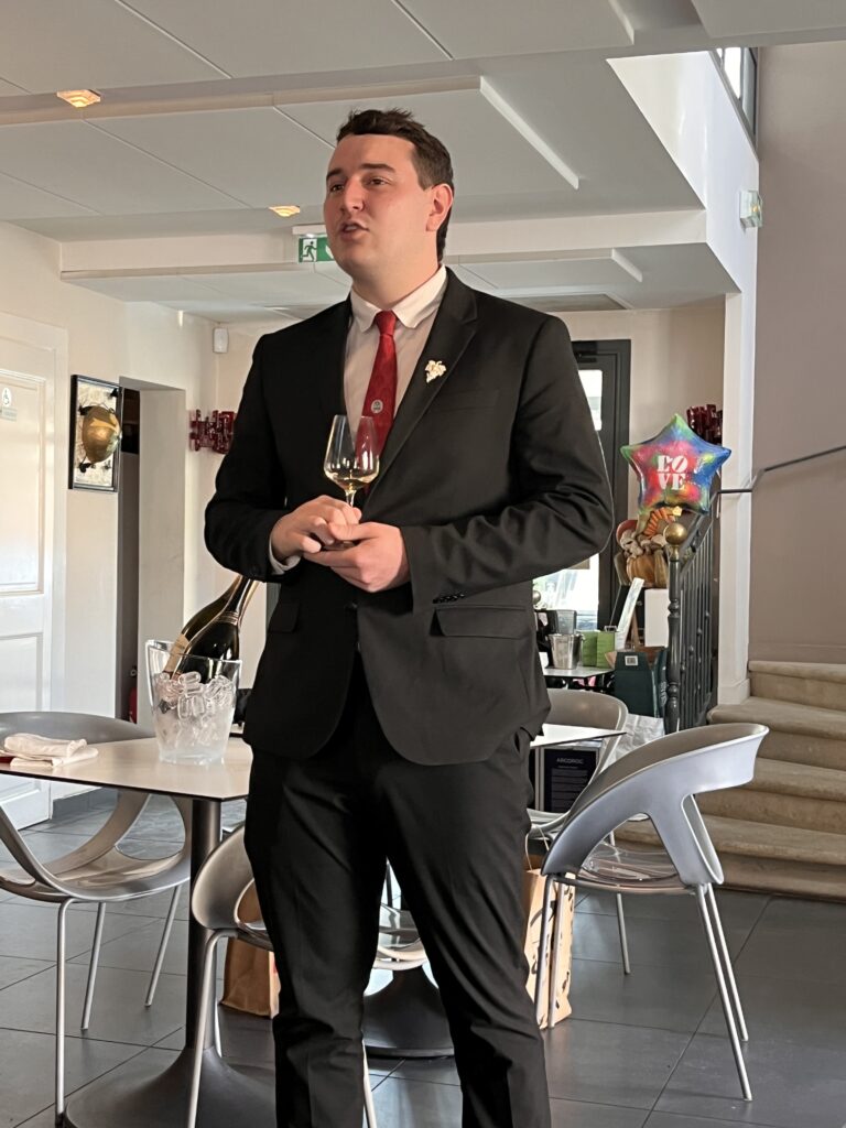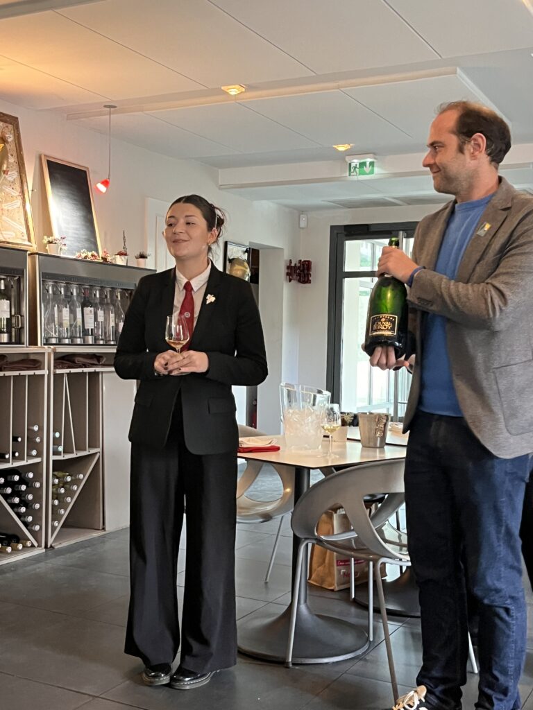 Au fil de la master class, les élèves et les membres ont pu découvrir l’histoire de la maison, son exigence qualitative, ainsi que le cadre réglementaire strict de l’appellation Champagne, pilier de l’identité champenoise.